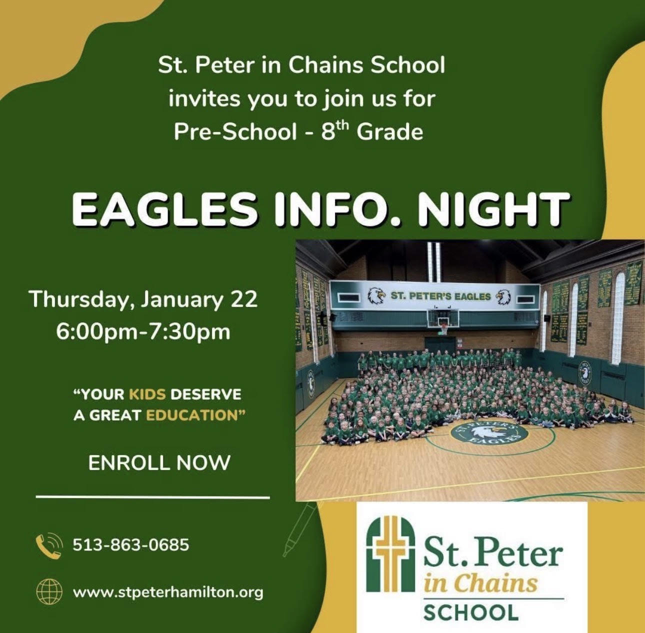 For more than a century, St. Peter in Chains School has offered a premier, Christ-centered education to the children of Hamilton and its surrounding neighborhoods. Today, we attract families yearning for a school that can help their child grow into a person of intellect and character -- and equip them to lead in an ever-changing world -- all within a safe and welcoming community that feels more like a family.